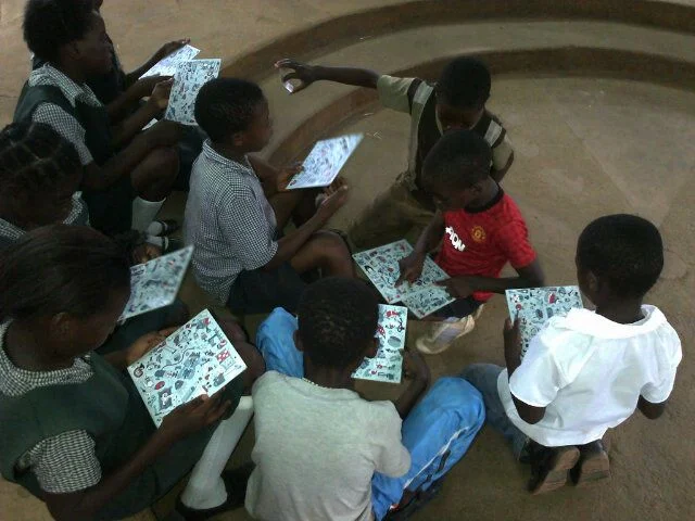 October 24th was Independence Day in Zambia. It was a Bank Holiday, but some of the boys at Fountain of Hope asked me if I would still come to see them – and how could I refuse? I would have missed them too much if I had sat at home all day on my own anyway! Craft activities are very popular at the moment and the boys had asked if they could make something. I suggested that we could make something to celebrate Zambia and they seemed keen so I spent a happy half hour in preparation, collecting the materials we would need to make bunting in Zambian colours. The boys were very excited when I unpacked this in the morning and set about decorating the Art Room with much enthusiasm (which allowed me an hour or so of uninterrupted and much needed library-tidying time, oh joy!). Then followed a very long (and exhausting, considering it was so hot and humid) session of dancing – including several renditions of YMCA, which is by far the favorite both in terms of the actions and the relevance of the lyrics. We have had quite a few new boys at FoH recently and it was nice to see some of them joining in too. After lunch I unveiled my piéce de resistance – I had bought some plain biscuits and the wherewithal to make icing/decorations. This was met with a mixture of excitement (at the thought of being able to eat lots of biscuits), bemusement (just what is she planning on doing with that stuff?), and awe (so hang on a minute, you put a little bit of ‘sunshine’ food colouring in, and it looks red in the bottle, but then it turns the whole lot bright yellow?) but I think they all enjoyed it. I had a crowd of boys in the Art Room, all taking it in turns to blob bits of icing onto the biscuits and sprinkle Hundreds and Thousands over them. Not one person dipped their finger in the icing or tried to steal a biscuit before everything was finished (well, not one person except me!) and as soon as we were done, one of the boys ran off to the tap to wash all the bowls out. We counted them all out to ensure that there was enough for 2 biscuits each and then the cry of “Man U” went out. This is the holler we all wait for because it means that there is food available, and it is guaranteed to bring everyone running from all over the Centre – including me if it’s lunch time! A queue formed outside the door to the Art Room and the boys collected their goodies. The boys thanked me and one said that he would never have imagined such a food was possible!